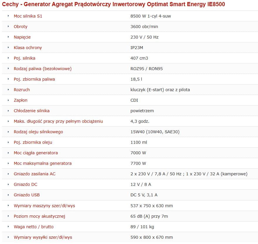 AGREGAT INWERTOROWY OPTIMAT SMART ENERGY IE8500
