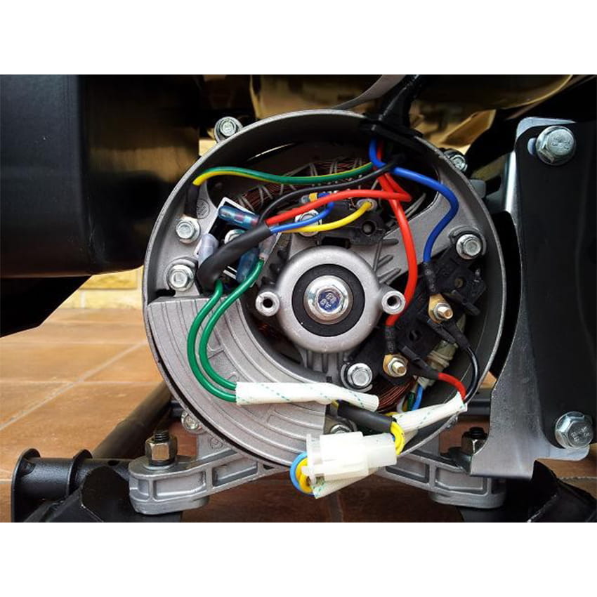 - Wszystkie połączenia elektryczne oraz przewody, a także stojan i wirnik prądnicy wykonano w miedzianym uzwojeniu.