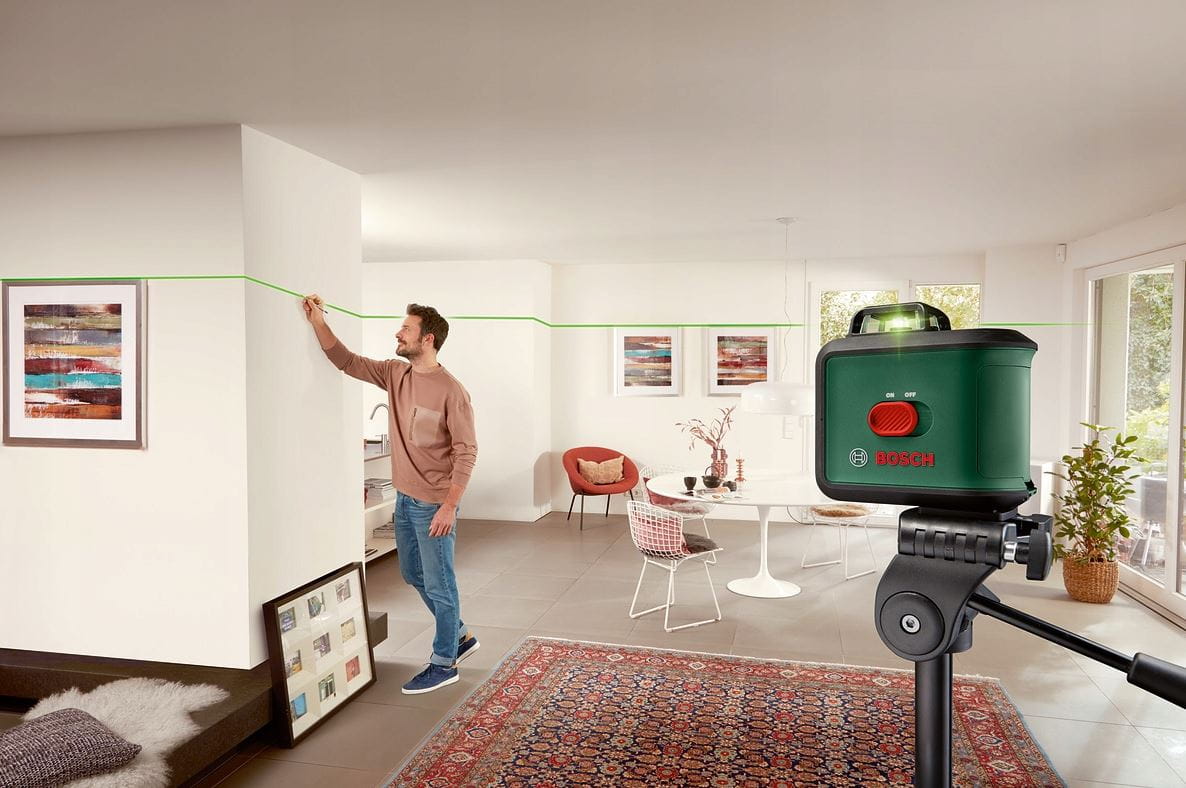 Pozioma linia laserowa 360° umożliwia dokładne wyrównywanie elementów w całym pomieszczeniu