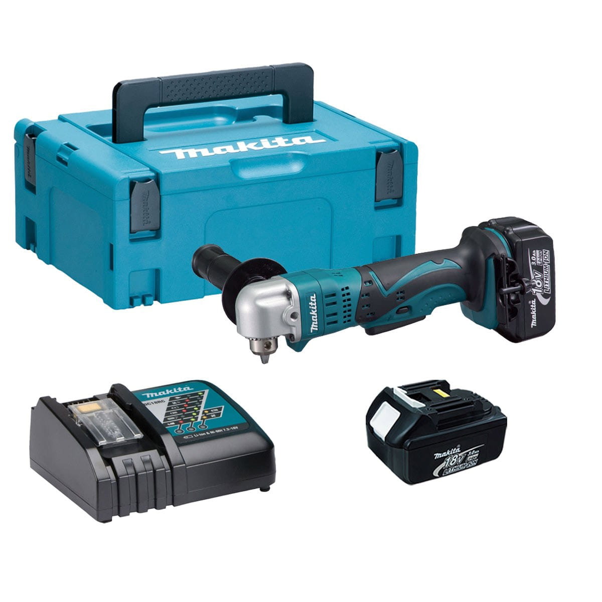 Dostarczana w walizce systemowej MAKPAC z 2 akumulatorami BL1830B (18 V / 3,0 Ah) i ładowarką
