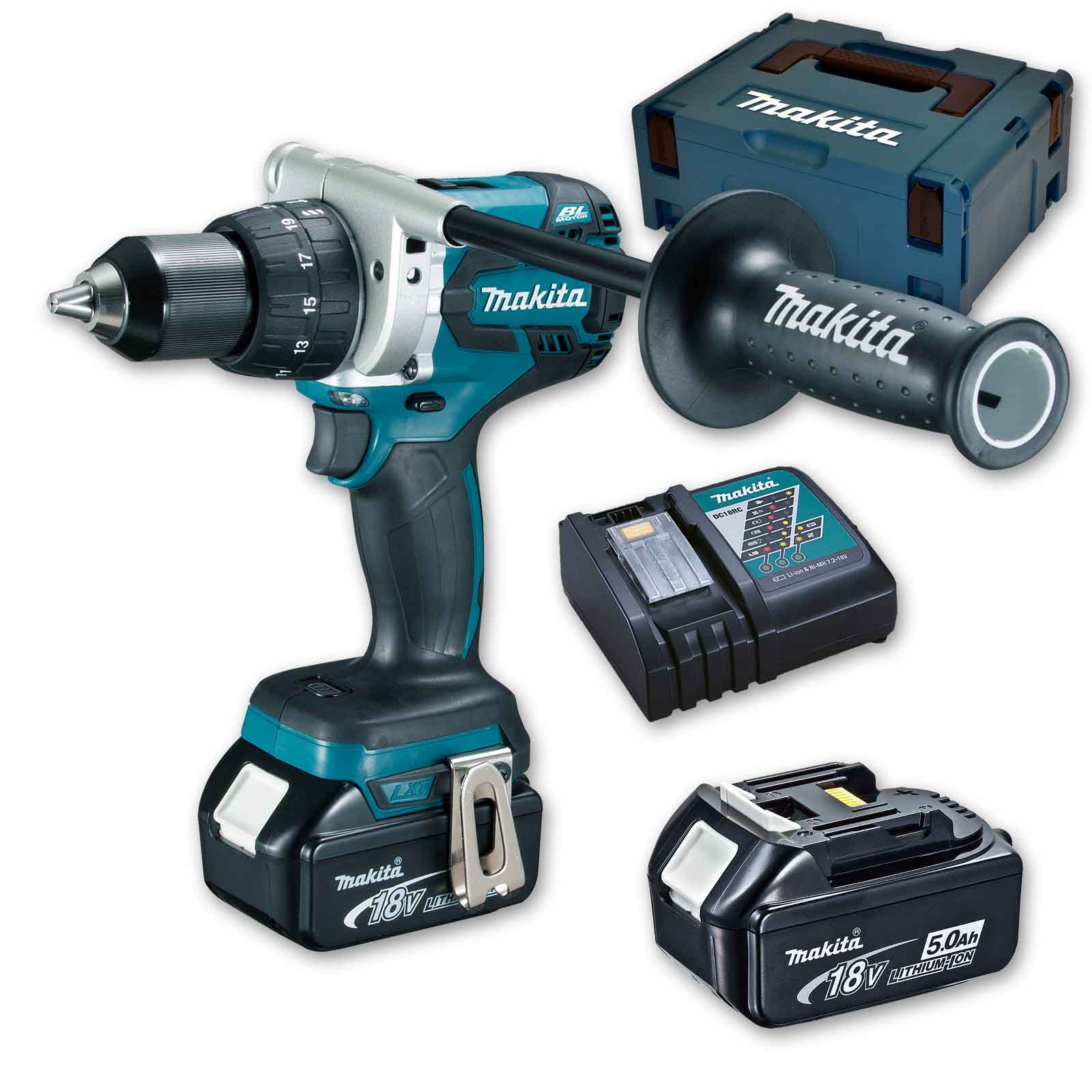 Dostarczana w walizce systemowej MAKPAC z dwoma akumulatorami BL1850B (18 V / 5,0 Ah) i ładowarką