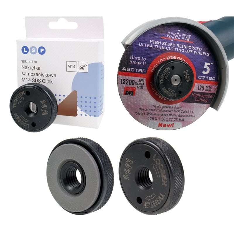 Nakrętka stosowana jest w małych i dużych szlifierkach kątowych z gwintem M14