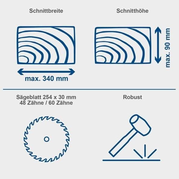 - Szerokość/wysokość cięcia przy 45°/90°: 340 x 38 mm