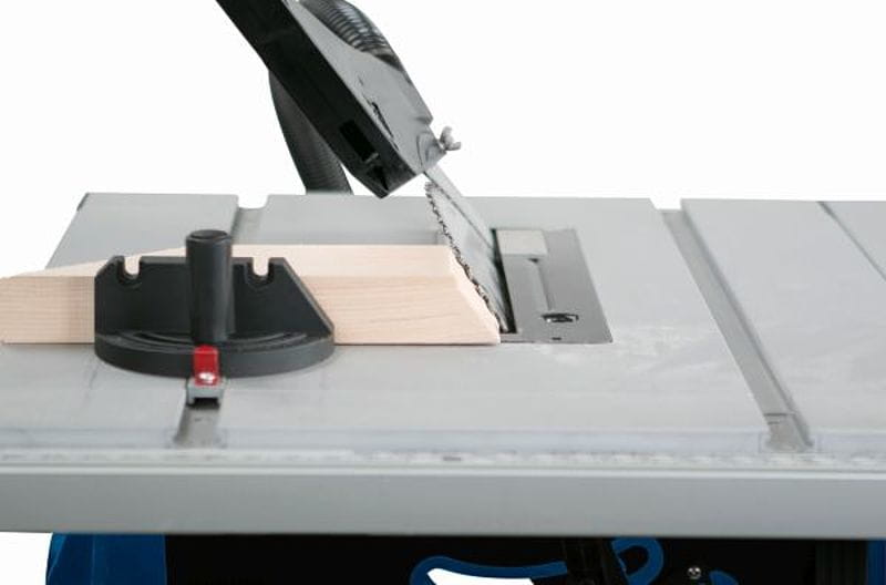 - Standardowo z przymiarem cięcia poprzecznego oraz ogranicznikiem wzdłużnym