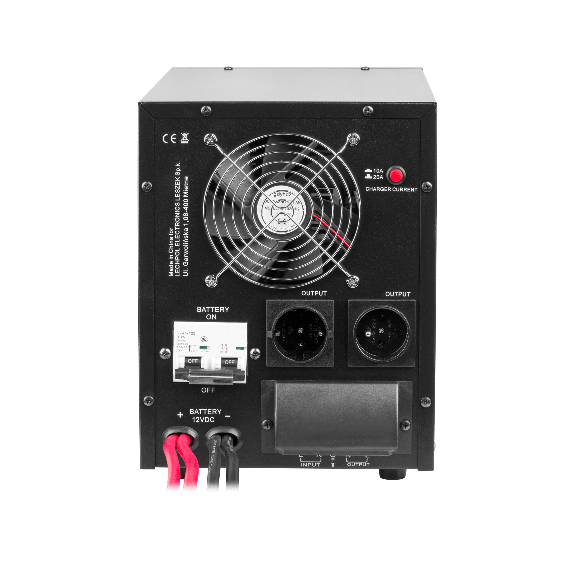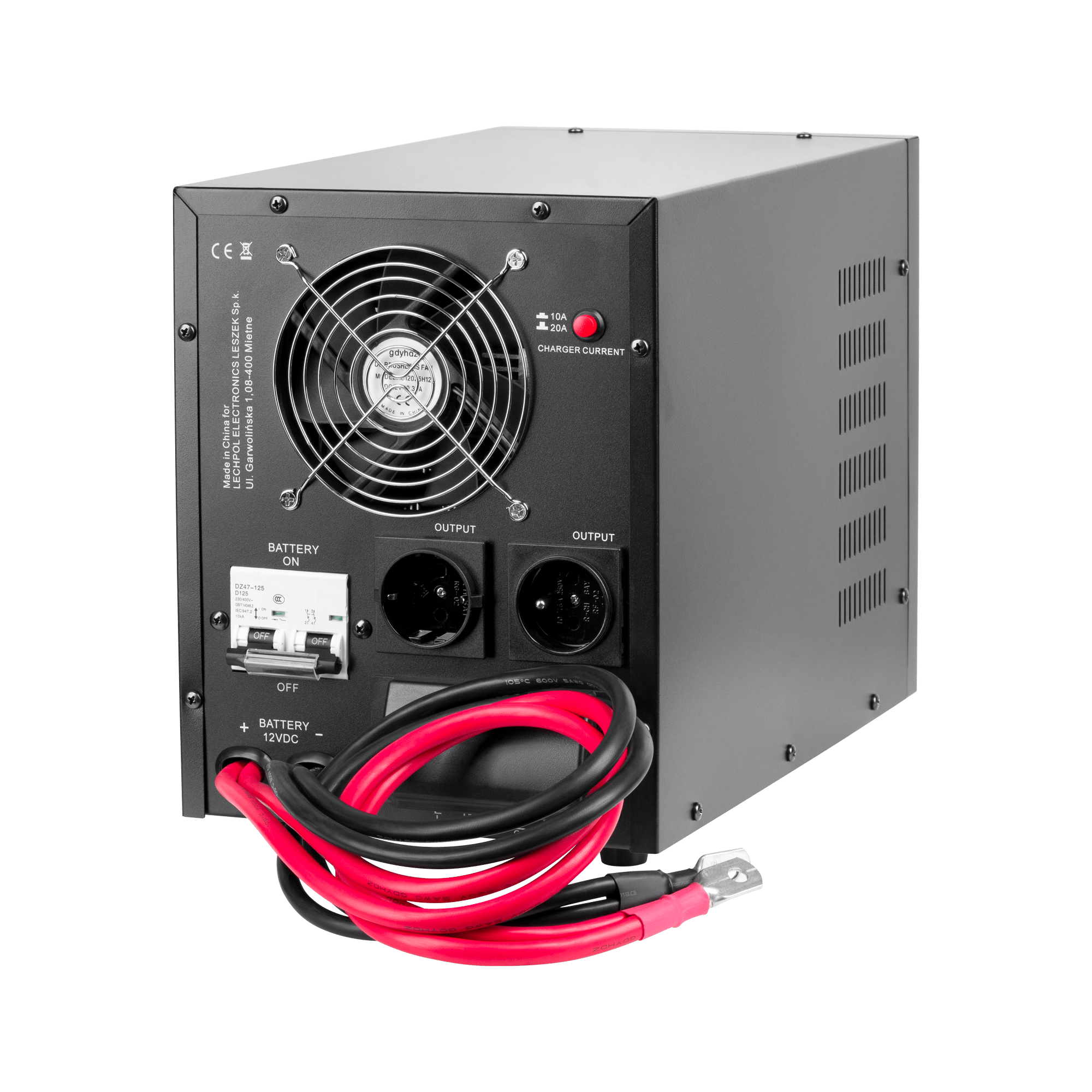 - • Prąd ładowania akumulatora: 10 A, 20 A