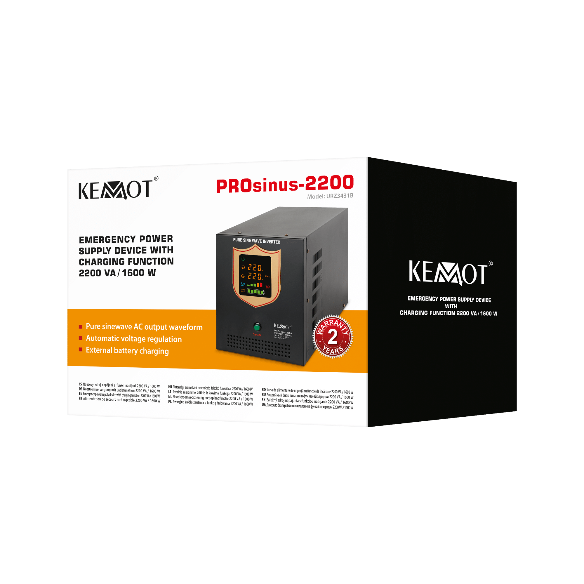 ZASILACZ AWARYJNY KEMOT PROSINUS-2200 PRZETWORNICA 12V 230V 2200VA/1600W - CZARNY
