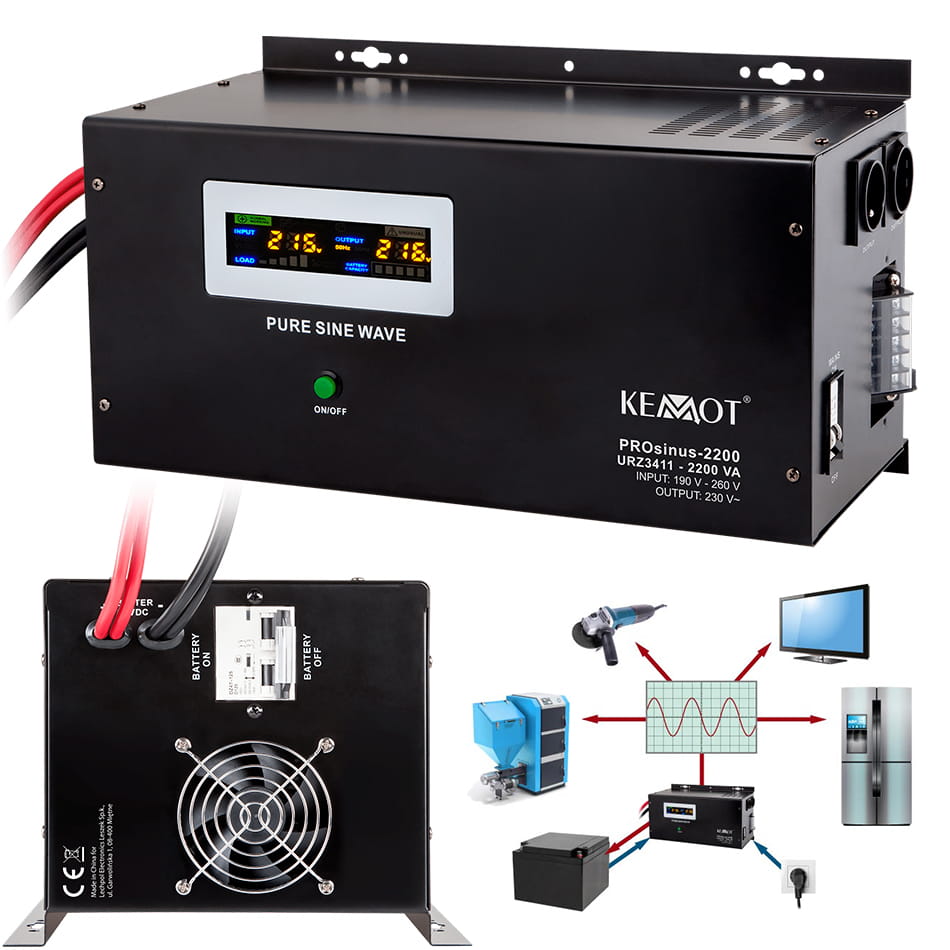 ZASILACZ AWARYJNY NAŚCIENNY KEMOT PROSINUS-2200 PRZETWORNICA 12V 230V 2200VA/1600W