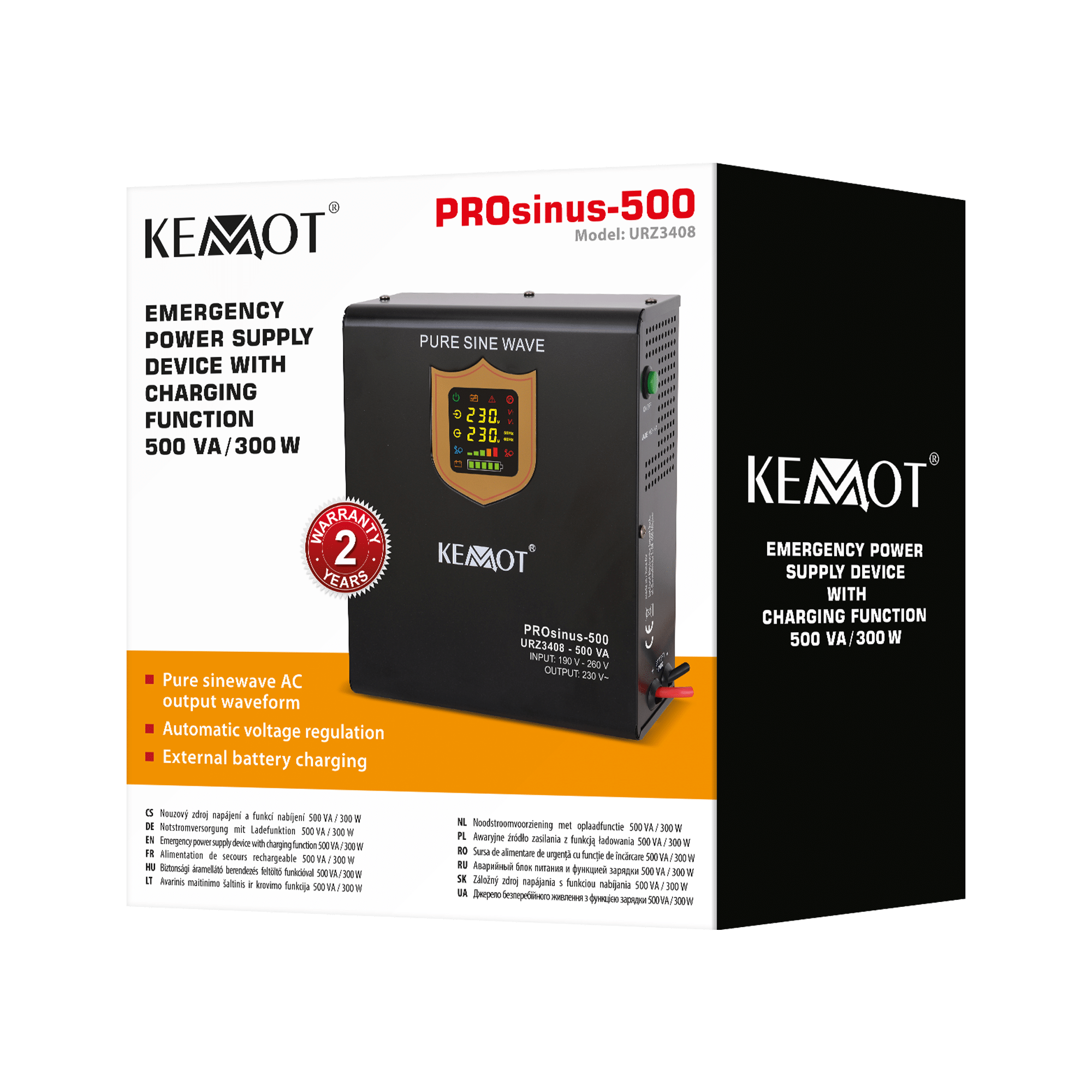 ZASILACZ AWARYJNY NAŚCIENNY KEMOT PROSINUS-500 PRZETWORNICA 12V 230V 500VA/300W