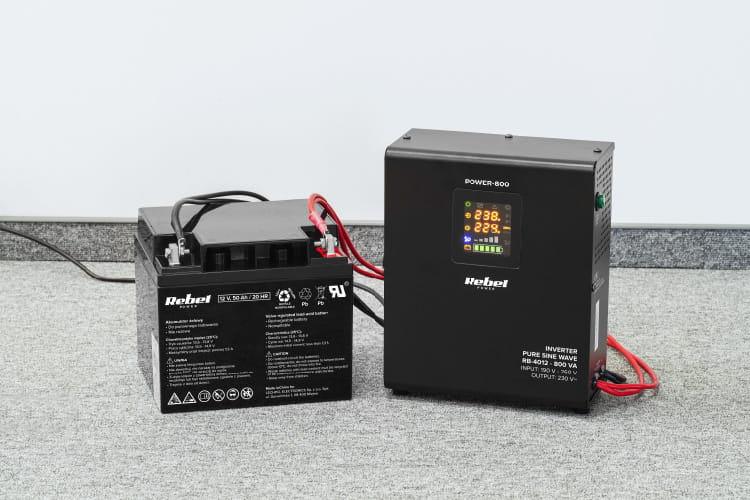 Akumulator do zasilania domu nie wchodzi w skład zestawu. Aby zapewnić najlepszą pracę swojego zasilacza awaryjnego, wybierz akumulator marki Rebel lub Vipow.