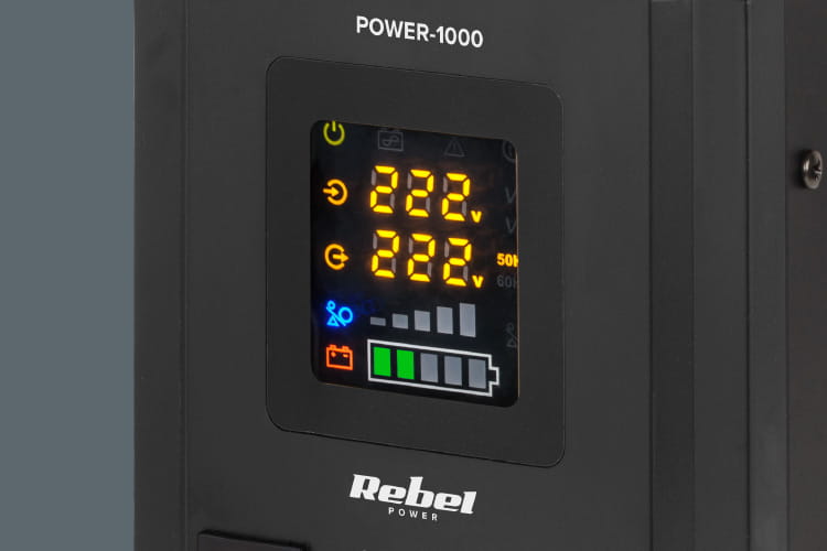 Komfortowe korzystnie z zasilacza awaryjnego Rebel gwarantuje czytelny wyświetlacz LED. Dzięki niemu możesz z łatwością odczytać aktualny status pracy urządzenia, sprawdzić m.in. poziom napięcia wejściowego, wyjściowego i częstotliwości. Co więcej szybko sprawdzisz też poziom obciążenia i poziom naładowania baterii.
